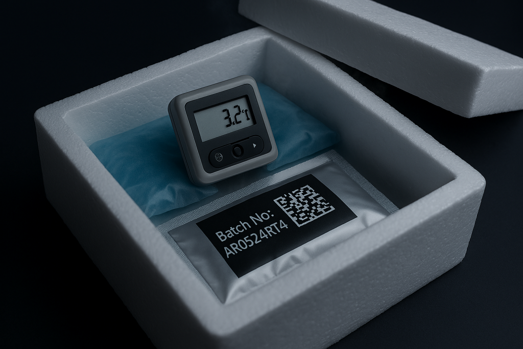 Alluvi packaging is validated for controlled cold-chain transport, ensuring compounds remain stable and compliant during international R&D delivery.